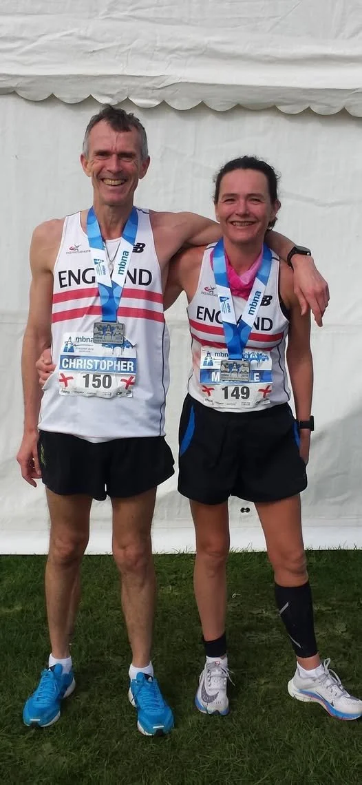 Michelle loved running, loved her clubs (East Cheshire Harriers, Northern Masters AC and Vegan Runners) and loved listening to the Local Runners Podcast. She has competed in many events on the track, road and cross country. She truly loved the marathon and that is where she achieved her fantastic time of 2 hours 58 as a V50. She was justly very proud of that and got a Sub 3 tattoo in commemoration of this. She has also represented England in Masters races over 10km and the marathon. She was very competitive but also very supportive of so many other athletes. She was always willing to offer advice, support and encouragement to others